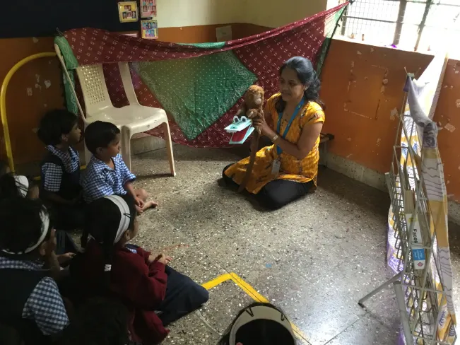 “I believe that storytelling sessions create a community of students with good values. It is one of the best opportunities a teacher can get to build strong connections with the children.” – Snehal Joshi, Teacher Leader at Anusuyabai Namdeo Waghere (ANW) English Medium School.